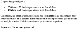 Semaine 2 Q6. Théâtre & Cinéma Discipline : Hist-géo Thèmes : Esprit critique Proportions, proportionnalité Question D’après ce graphique, il y (…) D’après ce graphique, il y a plus d’adultes qui vont au théâtre par rapport à ceux qui vont au cinéma. Est-ce : Vrai ? Faux ? On ne peut pas savoir Solution Solution par IA : Formulaire de remontées des résultats Ce formulaire permet de « faire remonter » les résultats de vos groupes de classes à chaque question. Les différents champs sont obligatoires. Question Q1. Le meilleur au basket Q2. The price of parking Q3. VOYAGE EN CAR Q4. Hauteur de l’immeuble Q5. Calendrier Q6. Théâtre & Cinéma Q7. Le pack de bouteilles d’eau Q8. Tours de roue d’un robot Q9. Meilleure promotion Q10. Durée de vie Q11. Façon Vera molnar Q12. Épaisseur d’une feuille Q13. Dénombrer sur un tableur Q14. Réglage d’un goutte-à-goutte Q15. Courbes de remplissage Q16. Distance Caen - Marseille Q17. Les plaques d’égouts Q18. Temps de sommeil Veuillez laisser ce champ vide : Code classe Nombre de bonnes réponses Effectif du groupe À propos du « code classe » Utiliser le bon code classe est important pour garantir les affichages des résultats des classes. Attention à bien l’indiquer. Envoyer les résultats Résultats des groupes